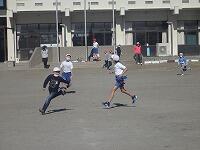 ボールが掴みづらく投げづらいこと、ボールが落下した時どこに転がるか分からない面白さなど、今までと違ったドッチボールの楽しさを味わっていました。