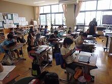 下の写真は9日に道徳の授業を行っていた3年、4年、5年の様子です。