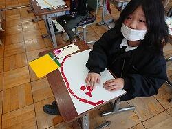 2年生は、色とりどりのシールを丁寧に切りながら作品を作っていきました。