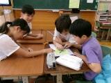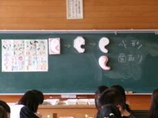 1年生:国語科の学習では、たくさんの言葉を見つけました。マスの中の文字を縦や横に読んだりすると知っている言葉がたくさん見つかりますね。言葉を発見すると歓声が上がっていました。楽しく学べましたね。
