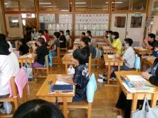 5年生:1組の国語科の学習では、議論の場で相手を説得させられるように、準備の話合いをしていました。実際の議論が楽しみですね。2組の算数科の授業では、倍数、公倍数について学習をしていました。級友と内容を確かめながらの学び合いは、理解を深めますね。