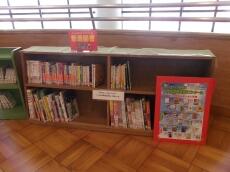 国府北小の図書室には、素敵な本がたくさんあります。図書室のお部屋の外のスペースにもたくさんの本が並んでいて、児童が借りてくれるのを楽しみに待っています。