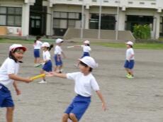 2年生:算数科の学習では、1Lの量を実際の水を使って確かめました。実感が大切ですね。体育科の学習では、リレーのバトンパスにチャレンジしました。楽しみながら意欲的に取り組んでいました。