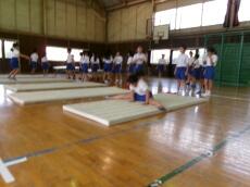 打つ道具もバットやラケット等、自分で選択して主体的に学習しています。マット運動では、十分な活動量を確保するために、練習の場を増やして取り組んでいます。