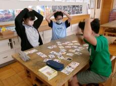 1年生から6年生が1つの班を作る『まごころ班』です。上学年の児童は、下学年の児童を思いやりながら活動し、下学年の児童も仲間を大切にしながら活動しています。「室内版だるまさんがころんだ」「トランプ遊び」「折り紙」等々、室内で工夫しながら活動していました。笑顔輝く素敵な時間となりました。