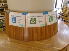 昇降口の前に、SDGsについて考える掲示コーナーを設けています。改めて考えるよい機会になるといいなあと思います。各学級でも学年に応じた課題を選んで話合うことで、考えを広めたり、深めたりしたいと思います。まずは、自分たちにできることを意識できたらいいですね。