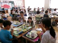 猛暑の中、給食室でおいしい給食を作ってくださる調理員さんや給食に関わるすべての皆様に感謝していただきます。