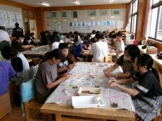 県の埋蔵文化財センターの方を講師にお招きして、親子で勾玉づくりにチャレンジしました。集中して石を削り、勾玉の形にしていきました。いにしえの人々に思いを馳せながら、無の境地で石を削ります。最後には、素敵な勾玉が完成しました。
