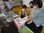 今回は、フラスコに閉じ込めた空気を温水で温める実験をしていました。