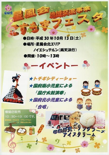 一覧へ 10.13 星風会こすもすフェスタ参加 投稿日時: 2018/10/09 国府南小管理者 10月13日(土)に行われる星風会のこすもすフェスタに児童が参加します。今回も5~6年生が国庁太鼓を演奏します。ぜひ見に来てください。