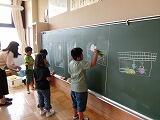 今日は、文星芸大の大学生4名を招いて、黒板アート教室を実施しました。
