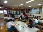 5年生が家庭科でエプロンを作っています。今日はポケットを付けて仕上げの段階です。みんな素敵に仕上がりました。