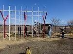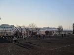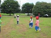 1年生が生活科で作った凧を揚げてみました。今日は風がなかったので一生懸命走って、凧が揚がるようにがんばりました。