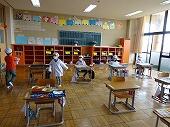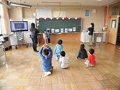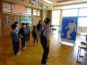 今日の表現運動は早い音楽に合わせてリズムをとる練習をしました。とても早い曲だったのでリズムをつかむのが大変でしたが、子どもたちは上手にできていました。
