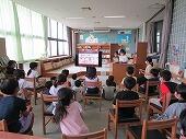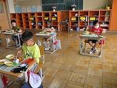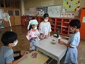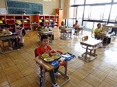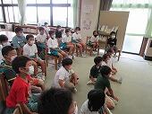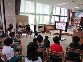今日は暑さ対策のため、休み時間と昼休みは外遊びはせずに室内で過ごしました。図書室では星風会訪問の代わりにお渡しする動画の試聴会を行いました。各学年の合唱や合奏がとてもすてきでした。