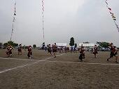 1年生だけで体育もやりました。体育小屋の中に興味津々の様子です。