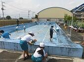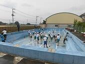 今日はプール清掃を行いました。コミスクのみなさんにもご協力いただき、4~6年生も一生懸命掃除をしました。水泳の授業が楽しみです。