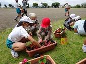 今日の緑を守り隊はプランターに花植えをしました。1年生は上級生に教わりながら上手にできました。