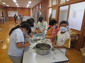 地域の南部サロンの参加者の方々と一緒に、ラジオ体操を行いました。熱中症対策を行いながら、体を動かして健康作りで交流しました。