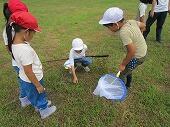 1・2年生が国庁跡に虫取りに行きました。草が刈られていたので、虫を見つけるのが大変だったようですが、バッタやトンボをつかまえて観察することができました。