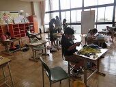 今日は1年生が図工で絵を仕上げていました。絵の具で好きな色を作り、はみ出さずに塗るのに苦戦していましたが、すてきな絵が完成しそうです。
