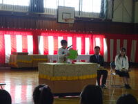 学校運営協議会、給食試食会、お話会に続き、ボランティア感謝の会を体育館で実施しました。