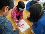 今日のEXPOタイムは、なかよし班でモンスター福笑いを行いました。目隠しをした人に、英語で「up」「down」など言って、いい場所に行けば「stop」をかけました。おもしろい顔のモンスターがたくさんでき、楽しいひとときを過ごしました。