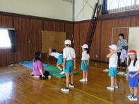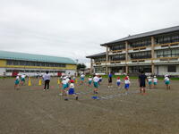 振替休日の翌日だった今朝のオープンタイムは、体育館で「体力づくり」を行いました。