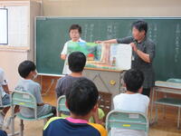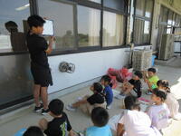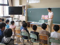 今回の内容は「熱中症」。図書室の先生と、保健室の先生のコラボで、読み聞かせと専門的なお話がありました。