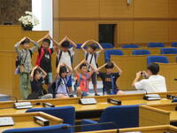 続いて、栃木市役所内を見学しました。議場にも入り、記念撮影もできました。
