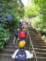 お昼ご飯の後は、あじさいがきれいな階段をのぼって、太平山神社を見学し、栃木市内を一望しました。