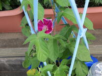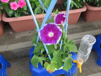 1年生の育てているアサガオ、先週末に1輪咲きましたが、月曜日にはしぼんでいました。