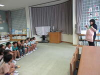 昼休み外遊びができないときは、図書室でお話タイムが開かれます。