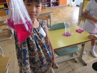 ポップコーンは、ゲリラ雷雨の影響で倒れてしまったため、夏休みの間に担任が収穫しました。