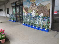 昇降口の外では、「緑を守り隊」でコミスクの方と一緒に植えた、プランターのお花でお出迎えします。