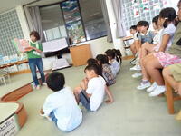 いつでも快適な空間の図書室では、図書室の先生が「エプロンシアター」をおこないました。
