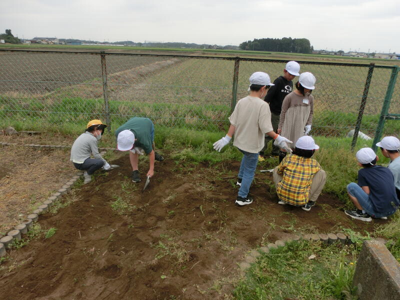朝早い時間帯でしたが、保護者やコミスクの方々が一緒に活動してくださったのでどこの班も上手に植えられました。