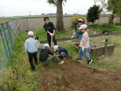 学校の農園は、地域の日向野さんが毎年協力してくださっています。