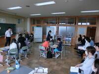 まずは、先生方とおはなし会の皆様が自己紹介をし、いざ、各教室へ。