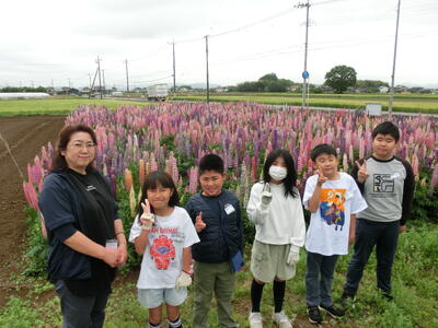 今日は、昨日撮れなかった低学年が、ルピナスの前で写真を撮りました。