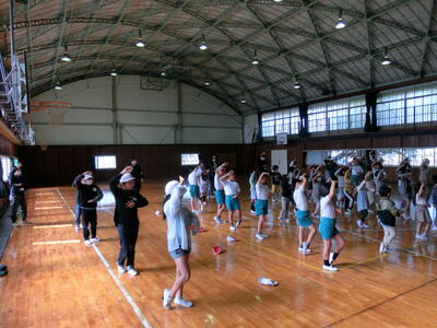 体育館で数回練習しただけですが、1年生も踊れています!すばらしい!!