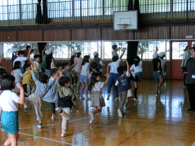 そのあと、ジャンケンゲームやドッジボールをして全校生で活動しました。