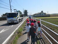 行き帰りの徒歩も、交通ルールを守って道路を歩く大切な学習です。