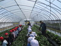 1・2年生が、学校から歩いて15分のところにある「長谷川いちご園」のハウス見学に出かけました。