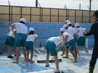 地域の方が、昼休みに子どもたちと遊んだり、お掃除を一緒にしたりします。