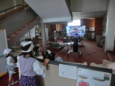 展示室にテレビを設置し、青栁さんが作製してくださったコミスク委員の活動を振り返る動画を放映しています。