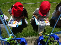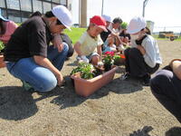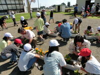 オープンタイムに、花の苗植えを行いました。なかよし班ごとに分かれて活動しました。