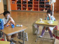 今日は3年生が同級生を迎えに来ていて、「先生と同じことをやってみよう!」と言い、みんなが即実践