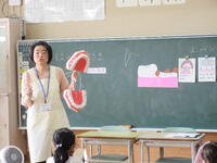 1年生が、保健室の先生と、正しい歯みがきの仕方について学習しました。