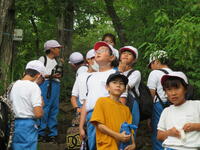 1年生が、4月に種をまいたアサガオが、「ふたば」が出て、「ほんば」が出て、